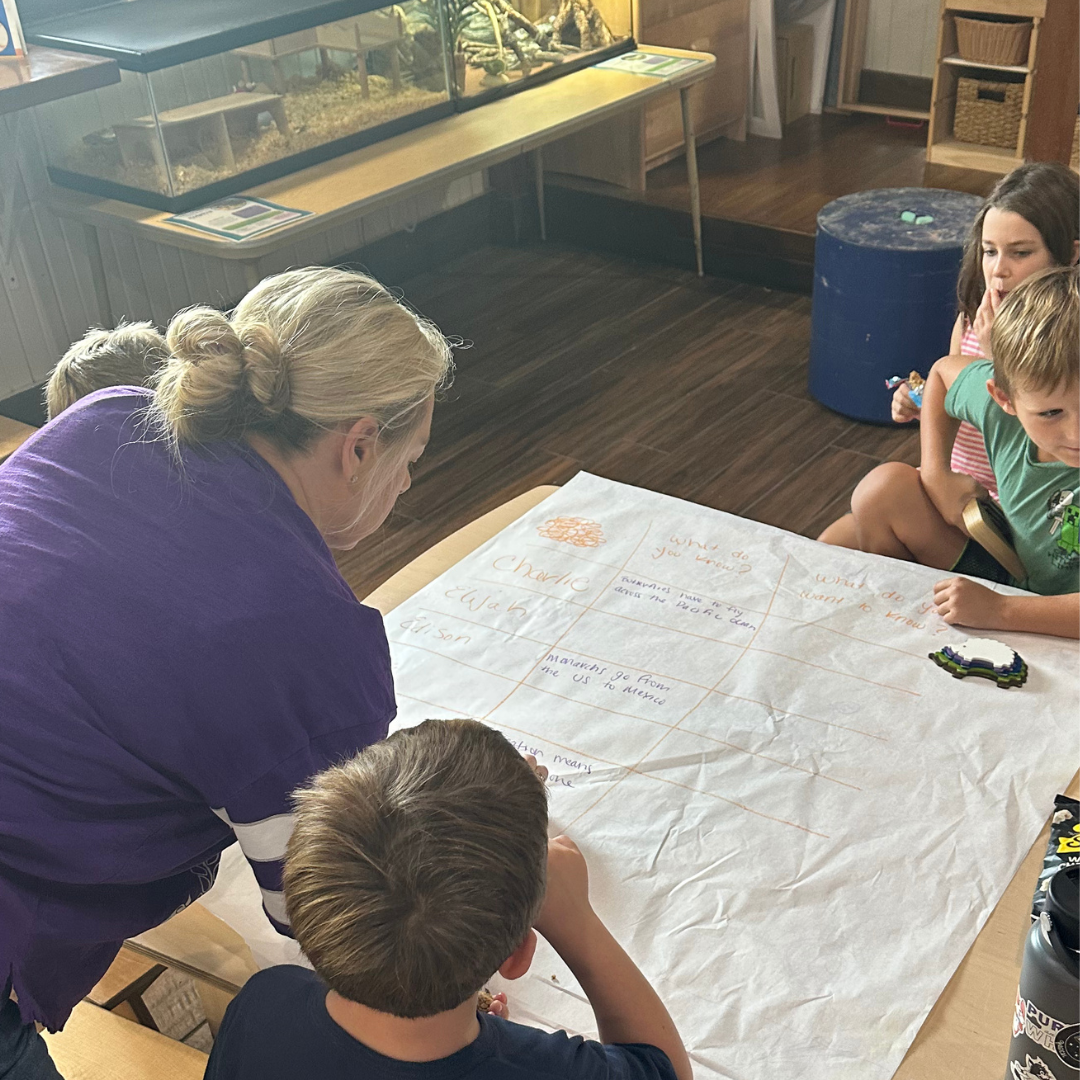 Children discussing what they know and what they want to know about migration.